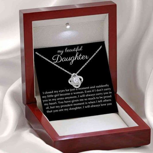 Personalized Gift for Daughter, Knot Necklace with Sentimental Message