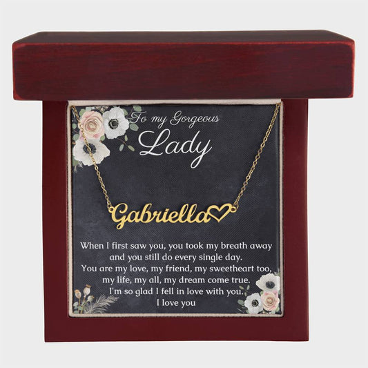 Heart Name Necklace Gift for Her, Jewelry for my gorgeous Lady with romantic Message