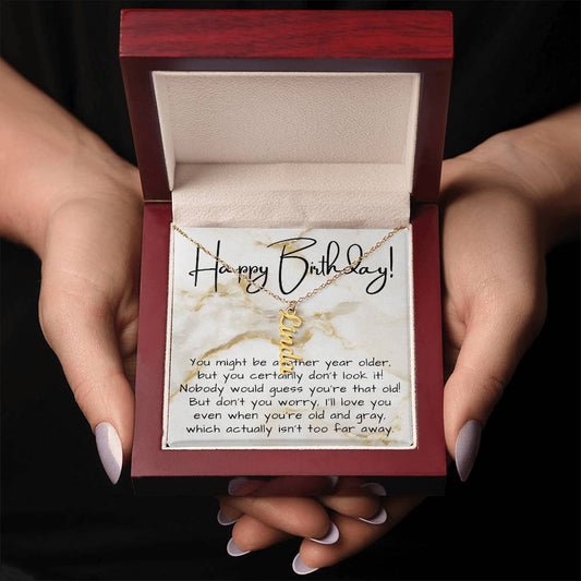 Sarcastic Birthday Gift for Women Vertical Name Necklace