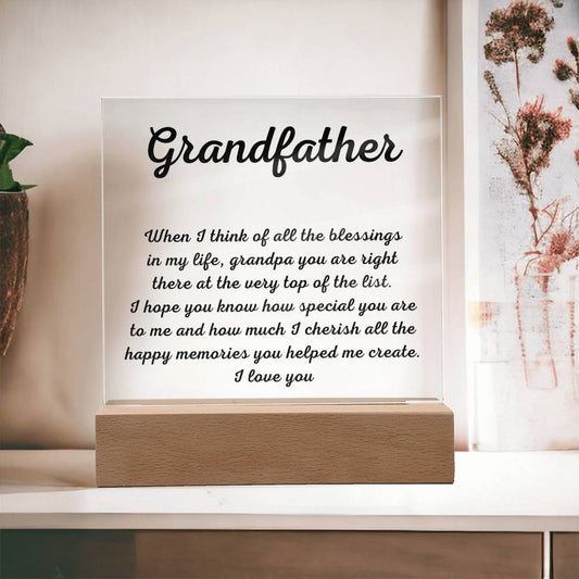 Grandfather Gift with thoughtful message, Acrylic Plaque with LED
