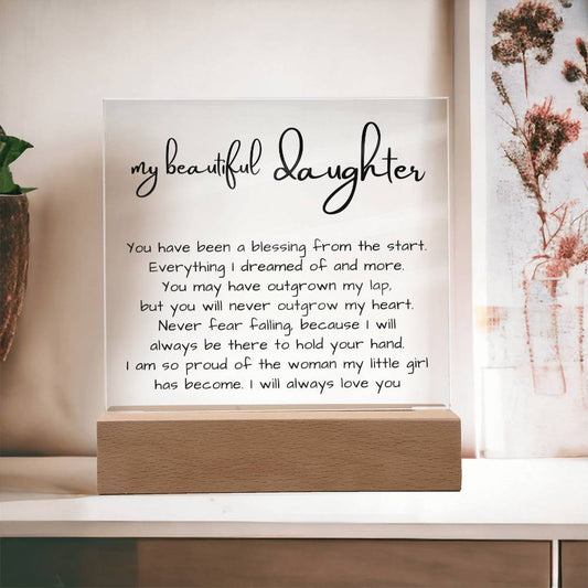 Daughter Gift with thoughtful message, Acrylic Plaque with LED