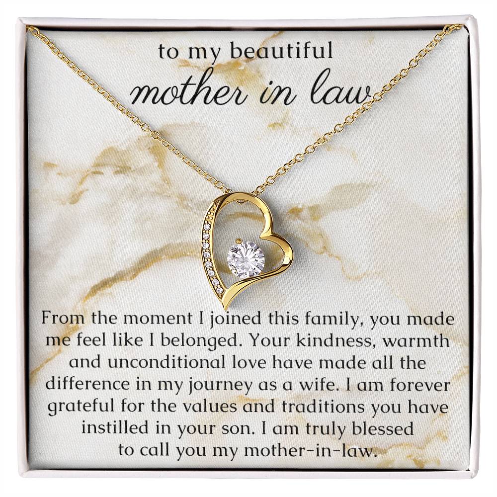 Mom In Law Gift from Bride, Heart Necklace with thoughtful Message